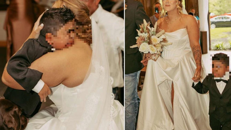 Sposa incontra il bambino che ha ricevuto il cuore di suo figlio e ascolta il battito in chiesa