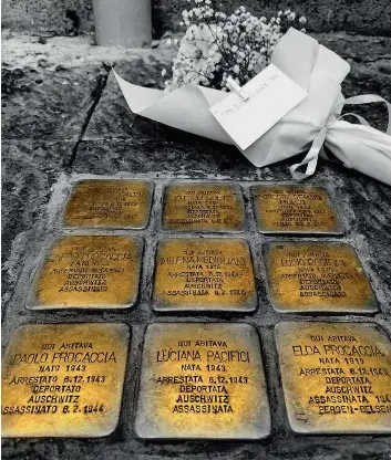 FOTO ANSA Tracce di storia Pietre d’inciampo a Napoli ricordano gli ebrei deportati ad Auschwitz